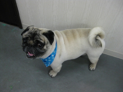 ビックリ✿ 2012,05,06,Sun ウトウト(uu) ジン君です バブル中ぶくぶくぶくッという音にビックリのジン君 とっておきスマイルでパシャリ 美容前 美容後 しわの所が蒸れてカイカイになってしまう ということでしたので、バリカンでスッキリ仕上げにしました 「お母さんとお父さん気に入ってくれるかな。O○」お疲れ様でした 鈴太郎君です バブル中はゆらゆら~ 鈴君お耳掃除中です 今回は足にポンポンをつけたサマーマイアミというスタイルに耳もわざとシャバシャバにしました 前胸はよだれかけのように残してますかわいい~ 姿勢を正して!お疲れ様でした おっとりなくぅ君 シャワーの音にビックリ??「クンクン」 緊張気味なお顔パシャリ 美容前のフワフワなお顔 可愛いお顔に変身 お疲れ様でした 実は・・・ カット中ははさみの音を子守唄にグッスリ寝てました笑