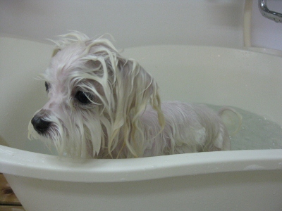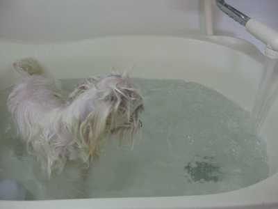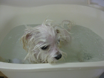 のびのび~♪ 2012,05,25,Fri モコ君です バブル溜め中の様子 何かが気になるらしく・・・ あっちを見たり・・・こっちを見たり 忙しいな。O○ でも、温浴中はウトウト フキフキ~ お疲れ様でした モコ君後ろ足がすごく伸びるな。。。と思ってたら 「そんなに伸びてる??」見つかっちゃた