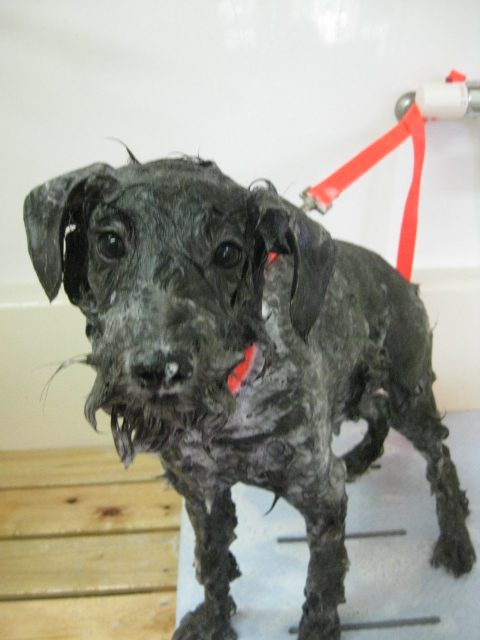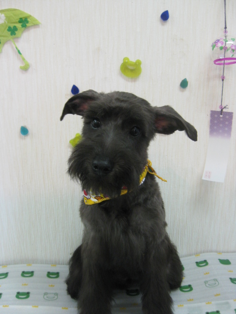 緊張も・・・ 2012,07,02,Mon シュナウザー×Tプードルのmixクゥ君 初めての場所にちょっぴり緊張気味 シャンプー中にパシャリ カット前のお顔が・・・ シュナウザーに大変身お疲れ様でした 美容が終わる頃にはこの表情 いっぱい遊びました