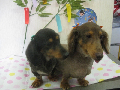 サマーカット♪ 2012,07,06,Fri ライ君です 雨の中来てくれました シャンプー中のお顔パシャリ 今からカットしますもう少し頑張って 今回もスッキリカットしました お疲れ様でした 元気いっぱい進之介君 何故か腕にぺったり?? シャンプー中はちょっとした音にビックリ そしてバブル中は、隙を見て逃げようと頑張る進之介君でしたが・・・ こんなにもうっとり ずっと楽しそうでしたお疲れ様でした 終わってからも大はしゃぎ チョコ君とクロ君です 仕上げ写真を撮る時は・・・ あっちを見たり こっちを見ていなかったり 一緒にあくびしたり ようやくパシャリできました お疲れ様でした 抱っこが大好きチロちゃん シャンプー中のお顔パシャリ 夏仕様にスッキリ 若返りました12才には見えません ドアの前でお迎えを待っていましたお疲れ様でした