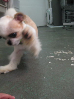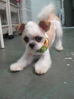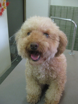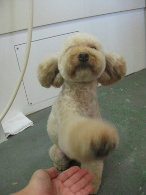 テンションUP✿ 2012,09,18,Tue チョコ君です 美容前から楽しそうにしていました 気持ち良さそうにしていました お疲れ様でした 終わってからもこのテンションでいっぱい遊びました チャイちゃんです ちょっぴり気持ち良さそう お疲れ様でした 終わってから「オテ」と言うと、そ~っとあげてくれましたが・・・ もう一度「オテ」と言うと シャキーン!と伸ばしてくれましたおててかわいい 「可愛いでしょ?」 パン君です ちょっぴり不安そうでした ビフォー アフターモヒカンにしました お疲れ様でした 美容後は遊んだり、一緒にシャンプー台をのぞいたりしていました ランちゃんです 爪切りをしに来てくれました 終わってからは「早く出して」と私の顔をチラッ