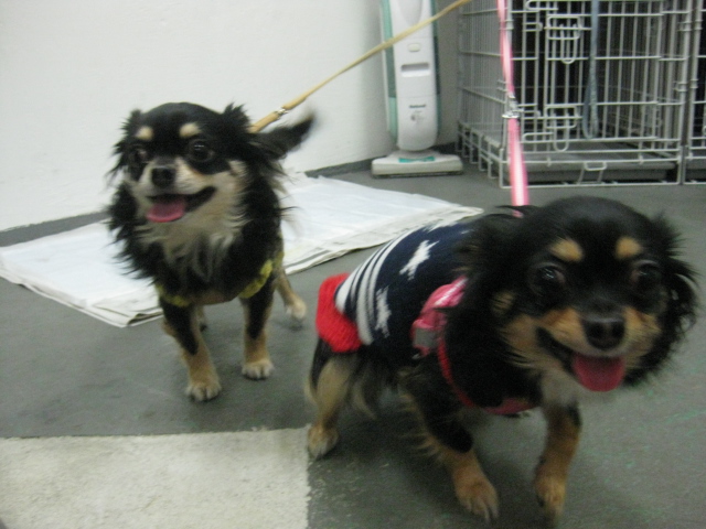テキーラ君・マルコちゃん・チェリーちゃん❤ 2013,01,12,Sat テキーラ君とマルコちゃんです すごく人なつっこく、「マルコちゃん?」「テキ君?」と声をかけるとしっぽフリフリで喜んでくれます マルコちゃんやっぱり女の子 「にこにこ~かわいい?」 「それか~・・・おすまし」 「どっちが可愛かった??」 テキーラ君は・・・ 「どこ?」 「クンクン」 「ずっと一緒なんだからね」とマルコちゃんを探します 「心配してたんだよ!」とテキーラ君ホントに仲良しなんですね チェリーちゃんです テキ君とマルコちゃんとは対象的にちょっぴり怖がりさんのチェリーちゃん チェリーちゃん何か発見!? チェリーちゃんお店の前を通る人が飼い主様じゃないかな~と見てたんです ちょっぴり緊張気味でパシャリお疲れ様でした
