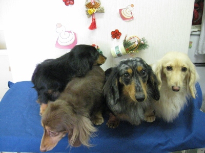 羅々ちゃん・姫愛桃ちゃん・流亜ちゃん・朱羅ちゃん❤ 2013,01,29,Tue 姫愛桃ちゃんと朱羅ちゃんです 2匹は姉妹でとっても仲良し まずは流亜ちゃんゲージの中にいるのが羅々ちゃんですこちらは親子なんですよ 「だって爪切りするんでしょ~」 キョロキョロ 次は羅々ちゃんです まず足裏をスッキリさせて、シャンプーへGO!! シャンプー中は気持ち良かったのかうっとり 続きまして、姫愛桃ちゃん ちょっぴり緊張気味なのか・・・頑張ってチラリ 最後は朱羅ちゃん シャンプー中はルンルンでした そして!!!!! 大変なのが仕上げ写真 は~い!撮ります!こっち見てくださ~い!!! なんとかパシャリできました 終わった後におやつを見せると・・・ わ~大変大変