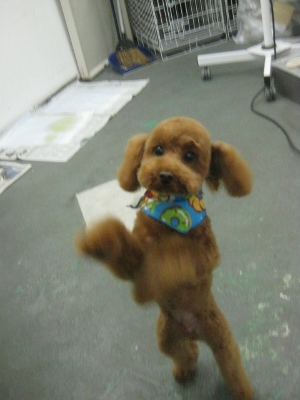 アラレちゃん・アンバー君・フィオちゃん☆彡 2013,03,19,Tue アラレちゃんです2週間以内のバブルに来てくれました いつも通り触って触って~からのスタート 「今からあわあわのお風呂なんだって」 「このお風呂ね・・・」 「いつも・・・うっとりしちゃうの」 気持ち良かったのかとってもかわいい笑顔 終わってからも触って触って~と元気いっぱいのアラレちゃんでした アンバー君です 「やだ下で遊ぶの!!」とバブルから出ようとするアンバー君 「遊んでからじゃダメ?」 「ちょっとだけ・・・」とちょっぴりスネ気味のアンバー君でしたが かわいいお顔パシャリできました 今からお顔カットしま~す プードルのアシメヘアー 今回はバッサリテディカットにしました 「僕変身できるんだよ!!見てて」 「へ~んしん」 「ジャンあっ!まって」 「ど~だ~かっこいいだろ~」 「え!?今から戦うの~!」「お願い!もう少し遊ばせて~~」 フィオちゃんです 初ワンズだったのですが、しっぽフリフリ~してくれました 早速バブルへ 「何これ!?」 「え?何?お湯が白くなってきたけど!?」と戸惑い気味だったフィオちゃんも後半は ワンズマジックにかかっちゃいました~ そして、汚れも浮いてました おててもスッキリ 仕上げ写真もバッチリ 終わってからは・・・ 何だかルンルン そのわけは、ご褒美のおやつ~でした