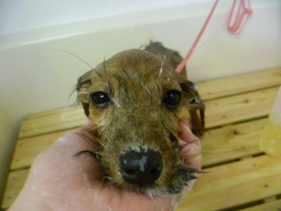 クサクサだったキラリもやっとお風呂に入れます