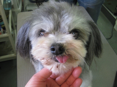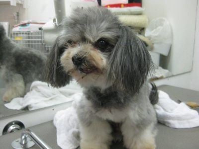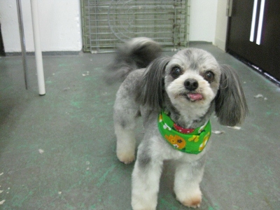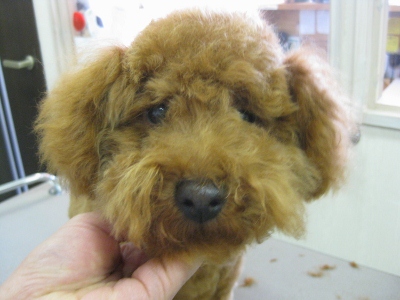 バズ君・こてつ君・ライム君☆ 2013,08,02,Fri バズ君です お外も気になるし、でも眠いし・・・ こんなおめめで見つめられたらキュン お顔カット中もウトウト お家でゆっくり休んで下さい こてつ君です バブル中はお母さん何処~??ってなってました。O カット中はとてもおりこうさん「僕おりこうさんでしょ」 「おりこうさんしてたから遊んでくれるよね」 降ろした途端ほうきに一直線毛がなくなってもハキハキして遊んでました ライム君です 早速シャンプー入ってきました お顔も短めにチョキチョキ・・・ 汚れている毛は切りつつお口をふんわり仕上げました 「お母さんはいつ迎えに来るの??」