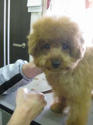 そら君・ピース君・レオン君♪ 2013,08,17,Sat そら君です 「ほら!こっち!」と元気いっぱい 「え~~もうおしまいなの~」と爪切り中 「じゃ乾かし終わったら遊んでくれる??」全部おわってからねぇ カット中も遊びたくてソワソワ・・・ 「よ~し!やっと遊べる~!いつものおやつもお願いね~!」とトリミング室で大はしゃぎだったのですが・・・ 次のお客様が来たのでゲージに入ってもらったところ・・・ん~このお顔・・・すねちゃった・・・?ごめんね ピース君です 「おととととと・・・溺れる~」 落ち着いて入ってもらったら今度は「これ何?やだやだやだ」 と大忙しだったピース君も「なぁ~んだ大丈夫じゃん!なんだか気持ちぃ」 カット中もおりこうさん 初ワンズでちょっぴり疲れちゃったかな。Oお家でゆっくり休んで下さい レオン君です 撮りますよ~!と呼びかけるも「何あれ~!」(笑) 「さっきのなんだったの~??」 後であれで遊ぼうね ヤスリと戦い中 ドライング中はゴロ~ン 「あ~!それそれ!おもちゃ最高~」 帰りは大好きなお兄ちゃんと戦ってました