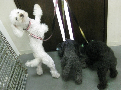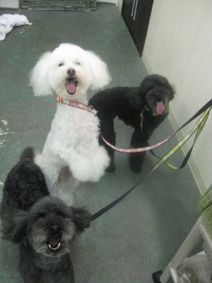 ペコちゃん・スバル君・ルイ君✿ 2013,08,26,Mon ペコちゃん・スバル君・ルイ君です ペコちゃんです お腹バリカンのビフォーアフター いつも元気いっぱいですが、トリミング中はおりこうさん スバル君です 足の裏の毛をスッキリ バブル中はウトウトしていました ルイ君です お耳の毛をヌキヌキします シャンプー中も遊びたくて仕方がないルイ君 みんなこっち見て下さ~いハイ!チーズ 早くお迎え来ないかなぁ。Oとソワソワ・・・