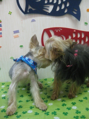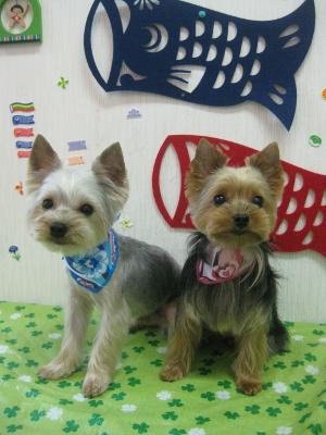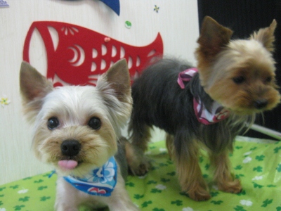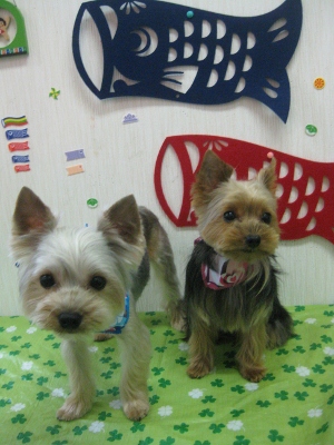 シュー君・トミー君・ムック君・マロンちゃん★ 2013,09,13,Fri シュー君です シュー君悪いお顔なってるよ!(笑) 一時預かりで来てくれました トミー君です 初ワンズに緊張~ バブル中はトミー君スタイルでうっとり 頭を洗うときはうっとりだったのですが・・・ シャワーと戦い中 身体をフキフキ~ 「かっこよくなった??」 お疲れ様でした ムック君&マロンちゃんです シャンプー中はとってもおりこうさんでした そろそろ撮るので並んで下さ~い 「べ~~」 何とか説得をし・・・可愛くパシャリできました