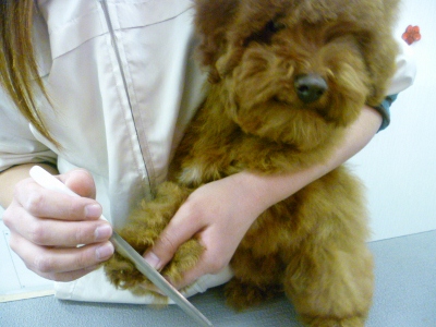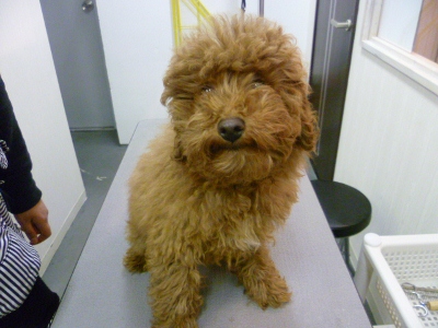 THE・どんちゃんマジック★ 2012,01,26,Thu バレバレ!? 4ヶ月の赤ちゃんドン君 美容前にパシャリ 種も仕掛けもありませんでも、あることをするだけで~・・・ こんなに小っちゃくなっちゃいました 「どうだった??THE・ドンちゃんマジックビックリしたでしょ??・・・・え?バレバレだった??」 「どうしてバレたんだろ・・・だってシャンプーに入る前は・・・」とブツブツ・・・・・ 気持ちを切り替えて、次は爪切り~ 飼い主様のお洋服やわんちゃんの皮膚を傷つけない様に、しっかりやすりもかけて 只今ドン君我慢中。。。かしこ~い 美容も無事終わり・・・ 「もしかしてご褒美」と、お目目・。*キラキラ*。・ は~い撮りますよ~ さすが赤ちゃん 終わった後はあっちいったり・・・こっちいったり・・・と楽しそうにはしゃいでいました 初めての美容お疲れ様でした
