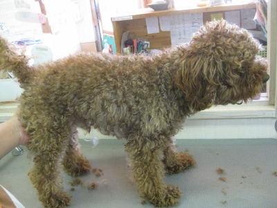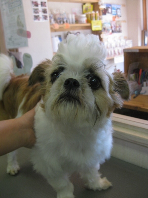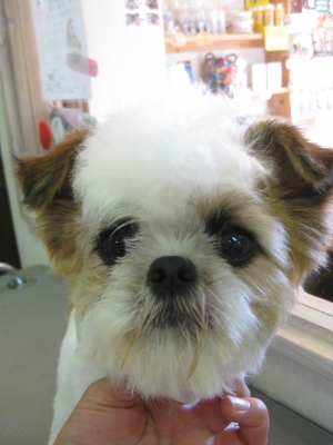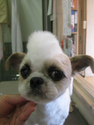 ムック君・アンちゃん・レオン君・パン君❤ 2013,09,23,Mon ムック君とアンちゃんです ムック君のお顔が素敵そして、一緒にお風呂に入りました お耳の毛を抜き抜きして・・・ 足の毛をチョキチョキ お疲れ様でした レオン君です バブル中はいっぱいお話をしました カット前と身体にバリカンをあてた後ですこれからハサミで整えていきます 笑顔でパシャリ 終わってからも元気いっぱいでした パン君です シャンプー中は大事なモヒカンが、なくなっちゃいました お顔カットのビフォーアフター 少しわかりにくいですが・・・お星さんが乗っています かっこいい~
