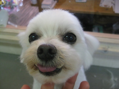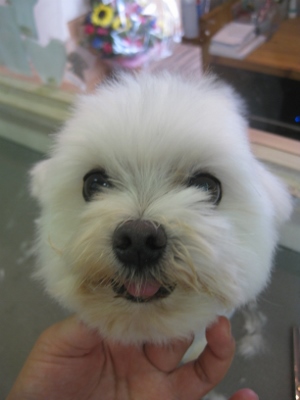 アンバー君・マイキー君・プリンちゃん・シエルちゃん♪ 2013,10,05,Sat マイキー君&アンバー君です マイキー君から始めましょう ん~可愛いバブルもうっとりしてくれています 苦手な作業も頑張ってくれていました 「遊んで!ねぇ!遊んでってばぁ!!」 そしてアンバー君 バブル中はトリマーさんのおめめを見てお話 お顔のビフォーアフター 首をかしげて可愛いお顔してくれました 待ってる間のマイキー君を隠し撮り ぷりんちゃんです と~っても大人しくまったりしてます お顔もスッキリカットして~おしま~い とっても美人さんです シエルちゃんです 美容前は楽しそうだったのに・・・ そうなんです。お顔にお湯がかからない様にお顔を隠してるところだったのです 目元をカットするだけで、おめめパッチリ お疲れ様でした