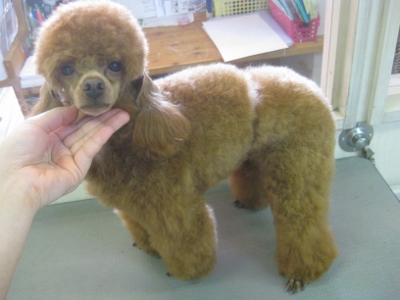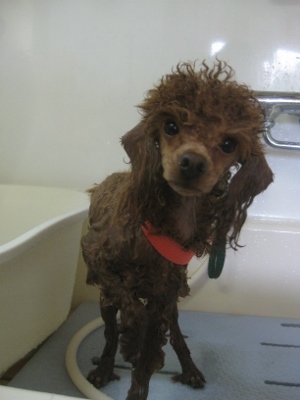 キャラメルちゃん・樹莉ちゃん・スン君✿ 2013,10,08,Tue キャラメルちゃんです 「なんでいつもお写真撮るの?」と不思議そうなところをパシャリ バブル中は汚れが浮いていました 今からチョキチョキしていきますね~ お顔もスッキリお疲れ様でした 樹莉ちゃんです バブルも慣れたもの!入ってすぐ寝ちゃいます 足まわりをスッキリさせて・・・ 笑顔でパシャリ スン君です お顔バリカンを済ませて、シャンプーへ ウエストにベルトをいれて・・・ 足にもポンポンを作ります とってもおしゃれさんでお耳もタッセルにしています 「似合ってるかなぁ。O」