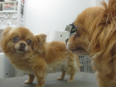 チャッピー君・ミッキー君・ピース君★ 2013,10,08,Tue チャッピー君&ミッキー君です ミッキーくん、ちょっと近すぎる・・・かな。O(笑) シャンプー中もバブル中もとっても気持ち良さそうにしてくれていました はい!チーズ 隣で待っているチャッピー君に「頑張って!」 そして、チャッピー君です 「何で同じ格好してるの?」と不思議そう シャンプー中はとってもお利口さん お迎えが待ち遠しくてソワソワ ピース君です 「あのトリマーさんが見てないうちに・・・」と脱出を試みるピース君 でも、慣れるとしっかり浸かってくれていました シャンプー中はトリマーさんとお話 爪切りも頑張ってくれていました 写真もバッチリ撮れました 「お迎えまだかなぁ。O」