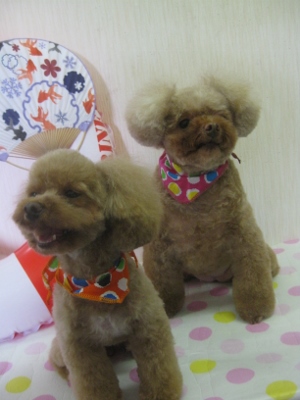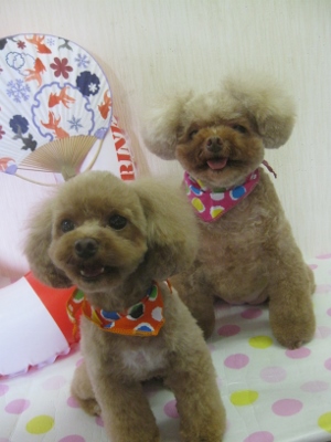フウタ君・シオン君・花ちゃん・cocoちゃん♪ 2013,10,11,Fri フウタ君です バブル中はウトウト だったのですが・・・ すぐ終わるからそんなお顔しないで~ そして、最後はイヤイヤ攻撃 苦手な作業も頑張ってくれていました そんなフウタ君が可愛い~と私たちは癒されちゃいました シオン君です シャンプー前にバッサリカットしていきます そして、バブル中はこんなにも汚れが浮いていました 終わった後の、この笑顔 「だって頑張ったから、ちくわもらえるんでしょ」 大好物のちくわも食べてご機嫌さん 花ちゃん&cocoちゃんです 早速シャンプーへ2匹ともとってもお利口さん そして、今からカットしていきますね~ 仲良く2匹でパシャリお疲れ様でした