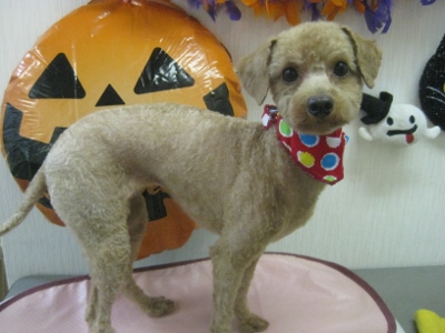 ピース君・ララちゃん・アンディ君♠ 2014,05,07,Wed ピース君です 怖がりさんに見せかけて元気いっぱいなんです お顔はもう少し伸ばして可愛いアフロにします ララちゃんです 初ワンズでちょっぴり緊張気味でおめめがキョロキョロ でも、とっても人懐こくてお利口さんでした アンディ君です シャンプーが終わると「早く早く~」と元気いっぱい 美容中もおりこうさんで、頑張ってくれていました