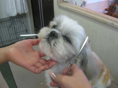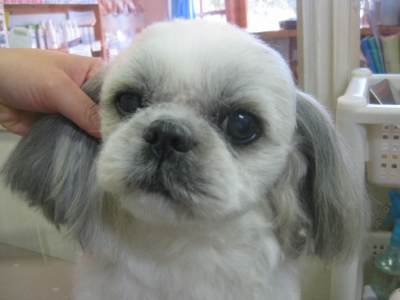 ココちゃん・クッキー君・ジョイ君♪ 2014,11,10,Mon ココちゃんです 今回はちょっぴりお疲れモードのココちゃん早く終わらすから頑張って 寂しそうなお顔で扉を見つめます「まだかなぁ。O」 クッキーくんです お湯がちょっぴり苦手ですがいつも頑張ってくれます とってもお利口さんでお顔カット中もリラックスでチョキチョキ 冬使用でふんわり仕上げました ジョイ君です 爪切りをしに来てくれました お利口さんなのであっという間に終わっちゃいます
