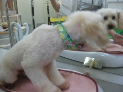 とら君・ショコラ君・ハリー君♦ 2014,12,02,Tue とら君です レンズが曇ってしまいましたすいません シャンプー中のうっとり気持ち良さそうなお顔 カット中のお利口さんなお顔もパシャリ 苦手な作業も頑張ってくれました ショコラ君です 初ワンズで緊張気味でしたが、終わる頃には慣れてくれた様で遊んでくれました 仕上げ写真のおててが可愛すぎました ハリー君です シャンプー中はモヒカンを作ってみたり バブル中も「角みたい~つんつん~」とはしゃぐ私達を不思議そうに見るハリー君 もう少し伸びるとアフロになるね