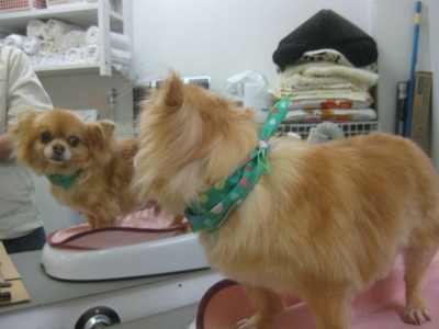 こたろう君・ルイ君・チャピー君✪ 2014,12,04,Thu こたろう君です 足先バリカンのラインを少し上にするだけで印象が変わりますね ニッカポッカスタイルが良く似合っていますね ルイ君です 初ワンズのルイ君ですが、台の上がちょっぴり怖い様子でした 美容中頑張った分終わってから大はしゃぎです 元気いっぱいで可愛かったです チャピー君です 体の毛を整えてスッキリしました どんどん足腰も弱くなってきているので、早く仕上げることを心がけていますが チャピー君はいつも頑張って協力をくれるので、やりやすいです